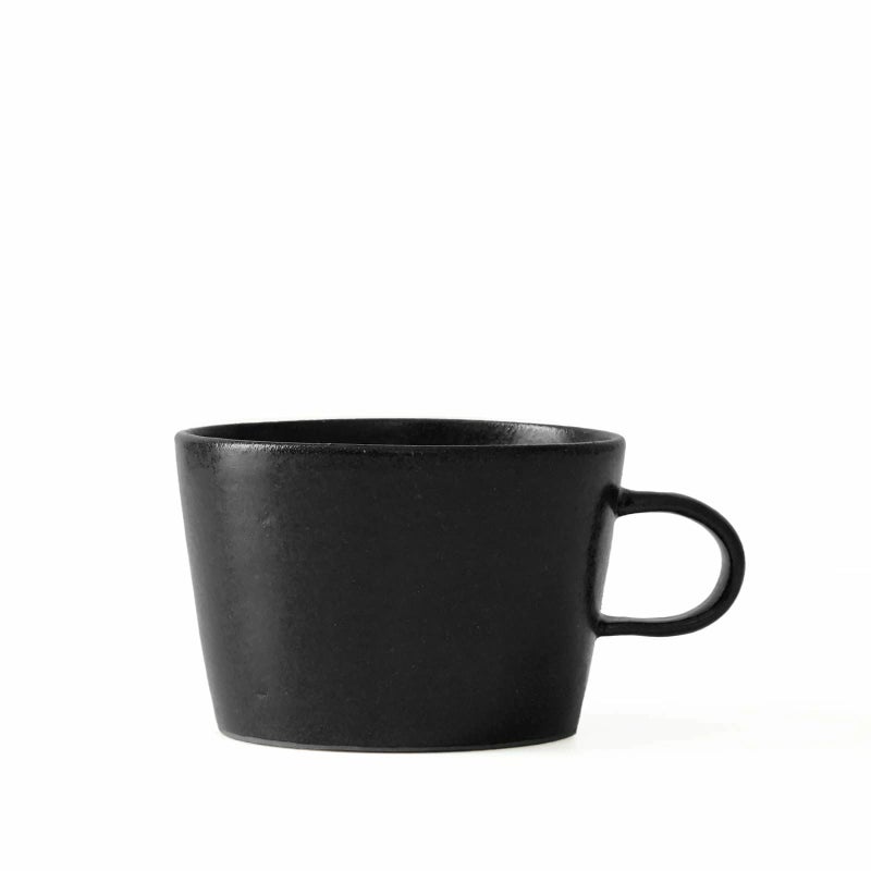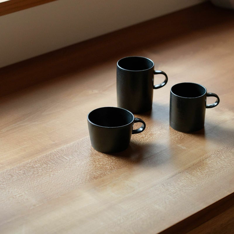 これにもちゃんと理由があって、丁寧に淹れたコーヒーやお茶を少しずつゆっくり味わってもらいたいという気持ちがこめられているそう。持ち手もかなりこぢんまりしているので人差し指で持ち、ほっと一息つきながら飲むのに適しています。