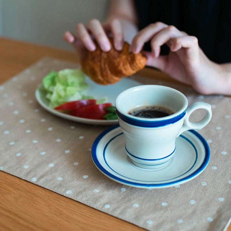 ちなみにこのブルーのラインは窯屋さんが筆で一本一本施しているそうで、個体によっては僅かなかすれやズレも見られます。