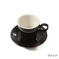 この配色にするためにまずカップを白色に塗り、中に手を入れ、そのまま黒色の釉薬に沈めているです。 そのため横から見ても白いフチが見え、黒なのにシックになりすぎない甘さがあります。