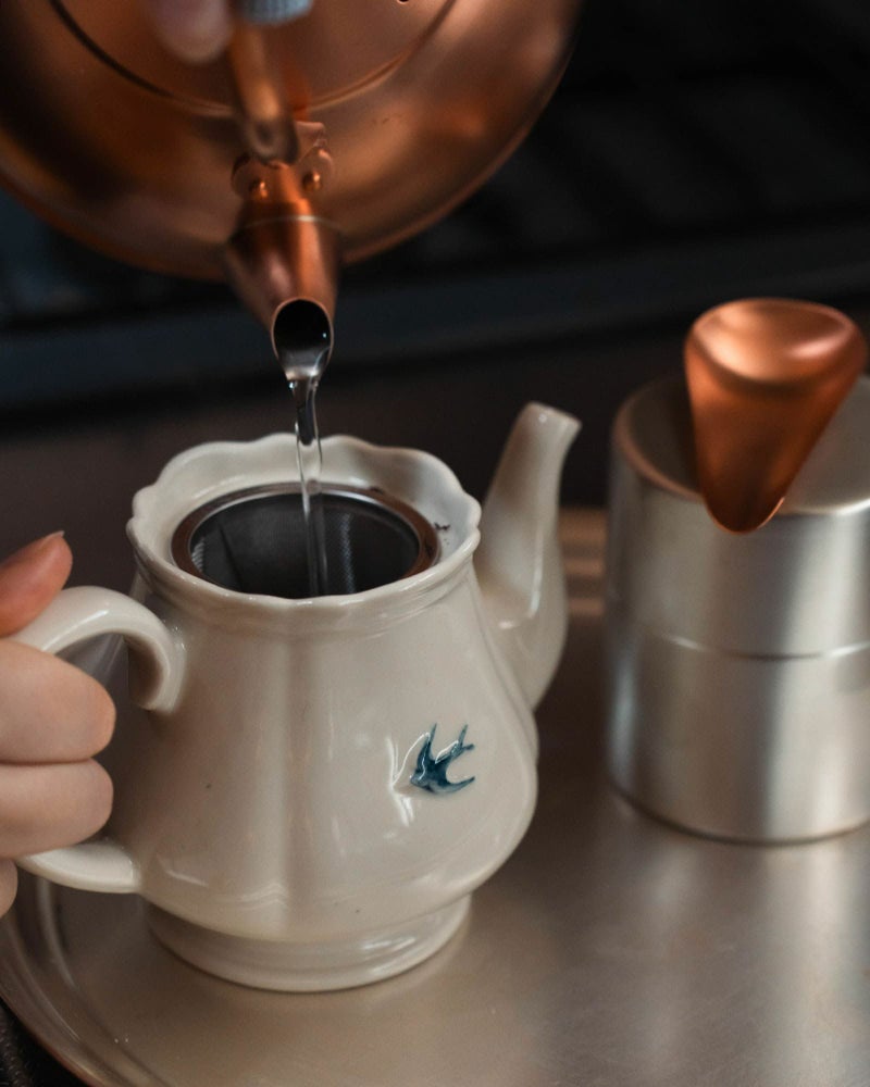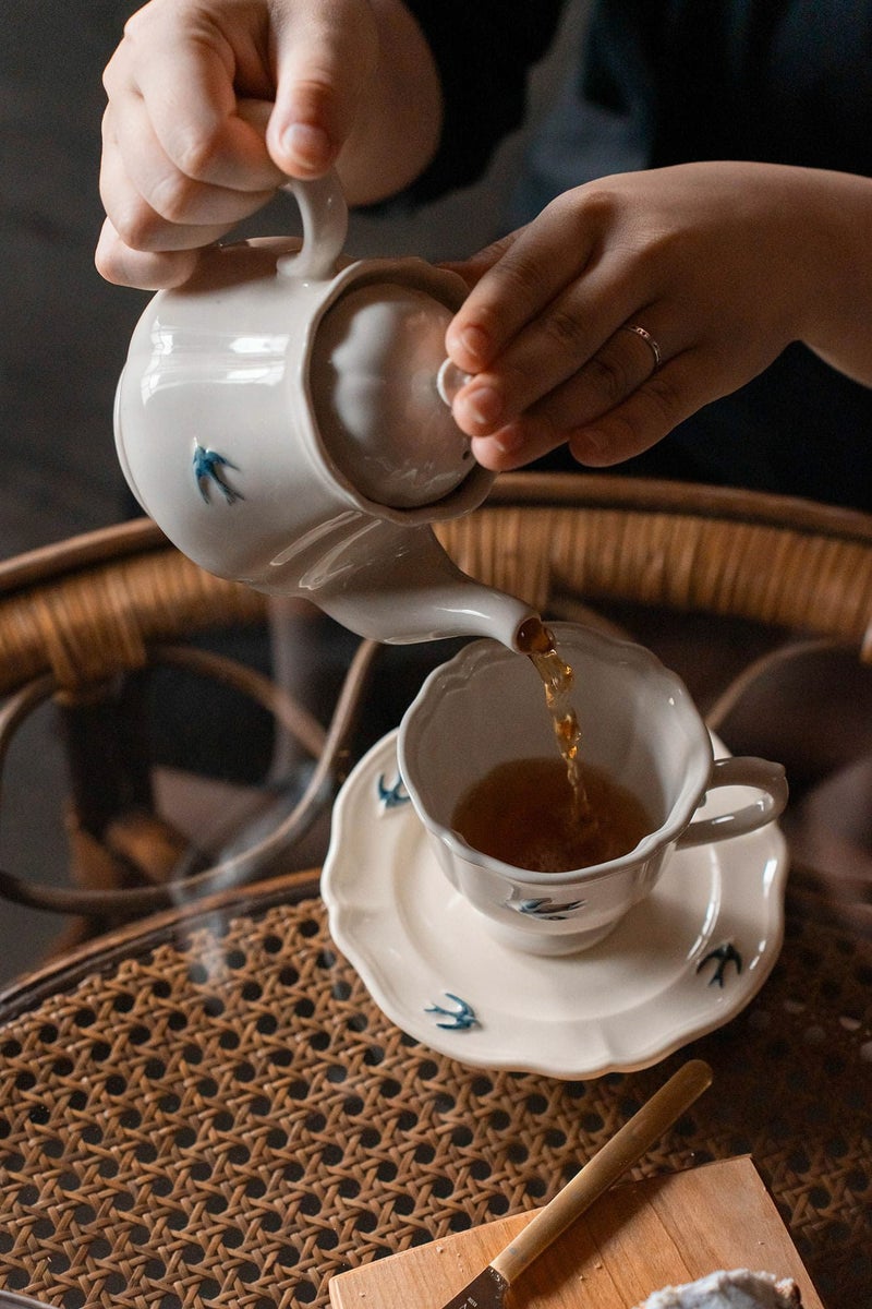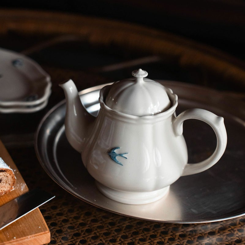 やわらかなアイボリーがかった白磁に、飛び立つツバメのワンポイントが映え、食卓に優雅な雰囲気を添えてくれます。