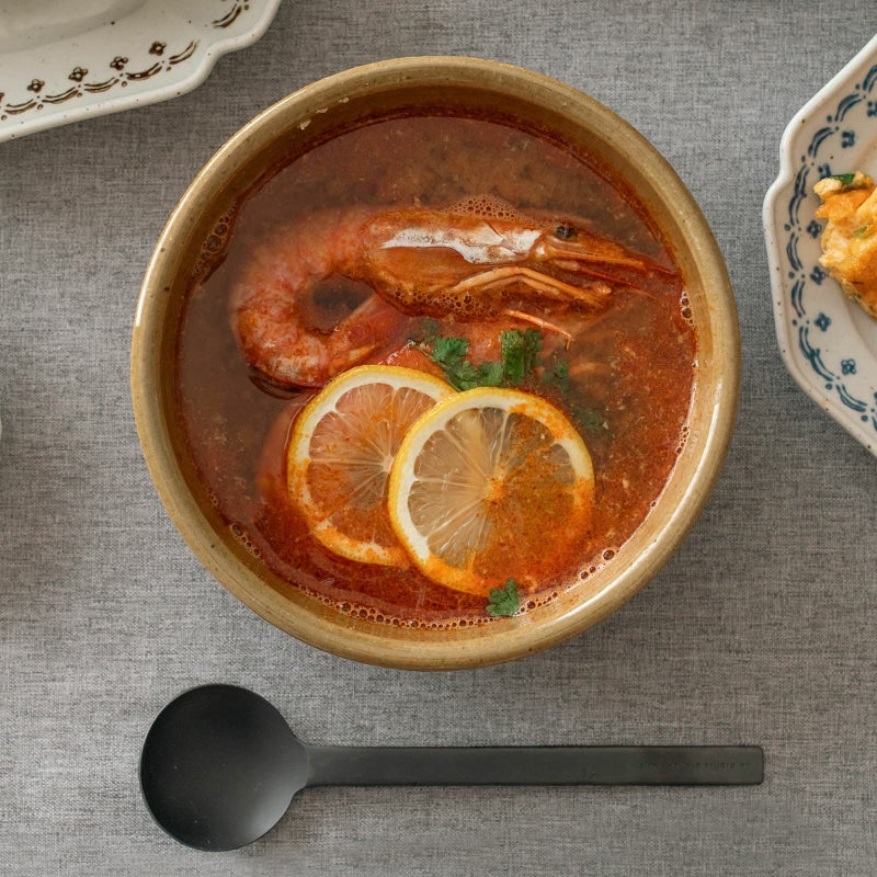 同シリーズではありませんが、陶器でできたれんげの「ブルエ」と使うとより統一感を出すことができます。